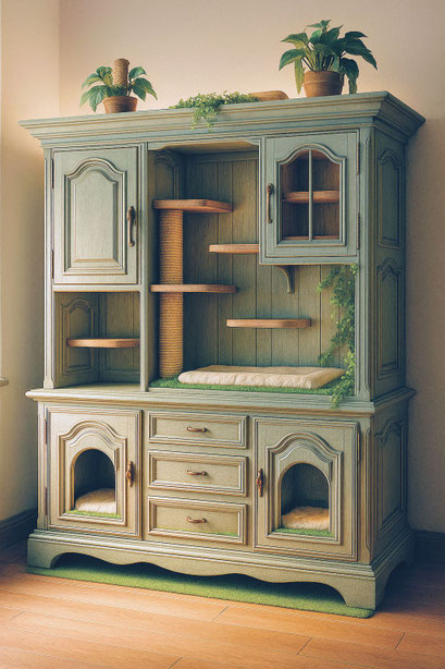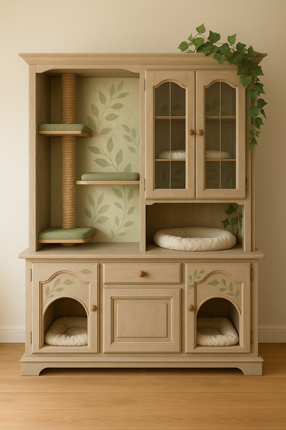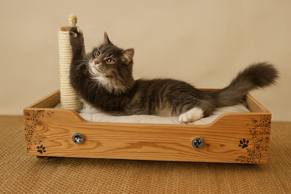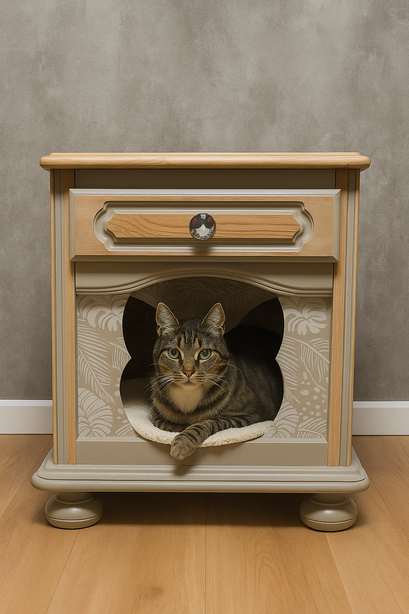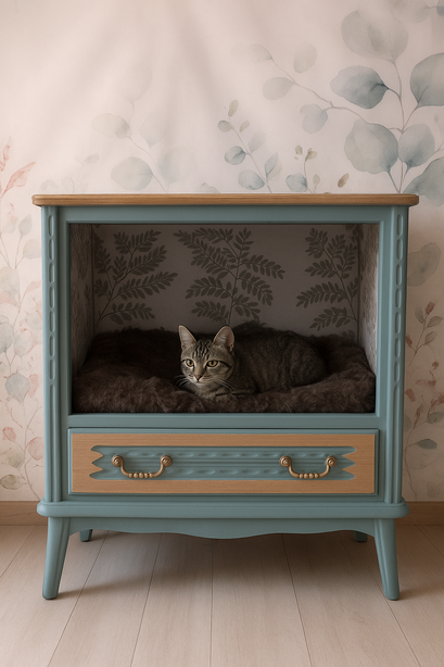 Chez Bois et Museaux, nous redonnons vie aux meubles oubliés en les transformant en véritables cocons pour vos compagnons. Espaces de repos pratiques et esthétiques pour chats, chiens et petits animaux: maisons pour chats lits intégrés, niches dissimulées, griffoirs chics et coussins sur mesure...