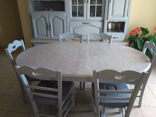 Relooking salle à manger blanc "prestige" et chêne naturel vitrifé sur Le Mans